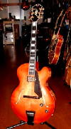 なんの変哲も無い合板ボディのアーチトップ・ギターなのですが、なぜあのようなサウンドが出るのかは、全くもって不思議であります。(多くのプロ・ギタリストの方にもお試し頂きましたが、みなさん口々にこちらのギターを絶賛いたします。ム・ホールの生き霊が乗り移っているのではないかという説も・・・)ちなみにペグはグローバー製でピックアップはダンカン製でした。
