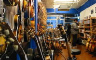 ギターが本当に好きなんですね。彼の熱弁からも分かりましたが店内はビンテージもののギブソン・ギターがところ狭しと並べられていました。