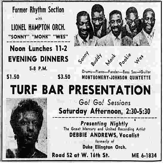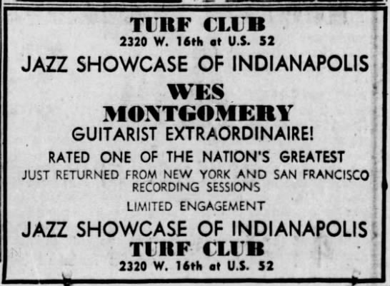 12月4日のターフ・クラブの広告では、全米で評価された天才ギタリストとし、ニューヨークとサンフランシスコのレコーディング・セッションから戻ったばかりのウェス・モンゴメリが出演とある。