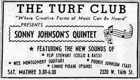インディアナポリスでウェスのクラブ出演を語るうえで代表的なクラブといえば、初めての出演契約を得た440クラブ、次にキャノンボールに見いだされ、キープニュースとリヴァーサイド・レコード契約するきっかけとなったミサイラル・ルーム、順序はおかしいがモンゴメリ・ジョンソン・クウィンテットが活動の場として最もお世話になったのが、ターフ・クラブである。