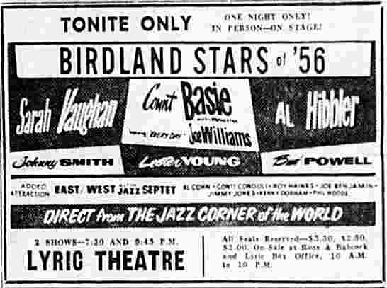 彼女のバックはウェス・モンゴメリ・トリオで午後8時開演。